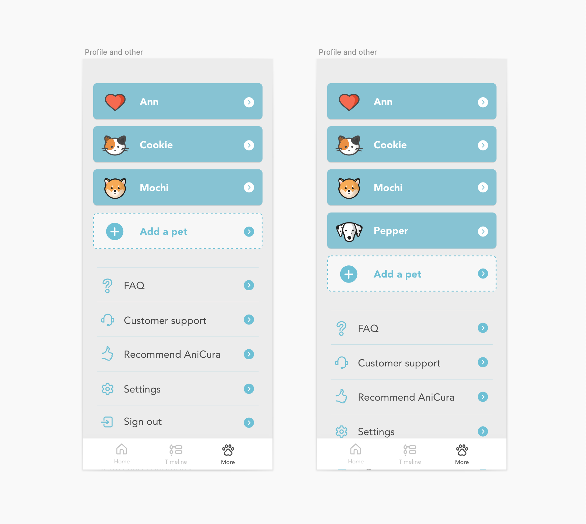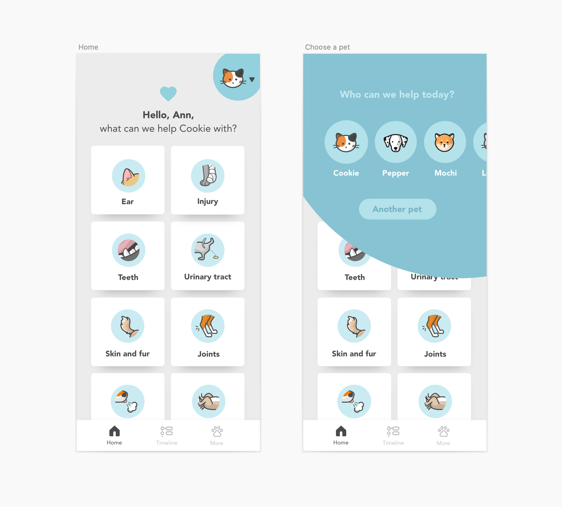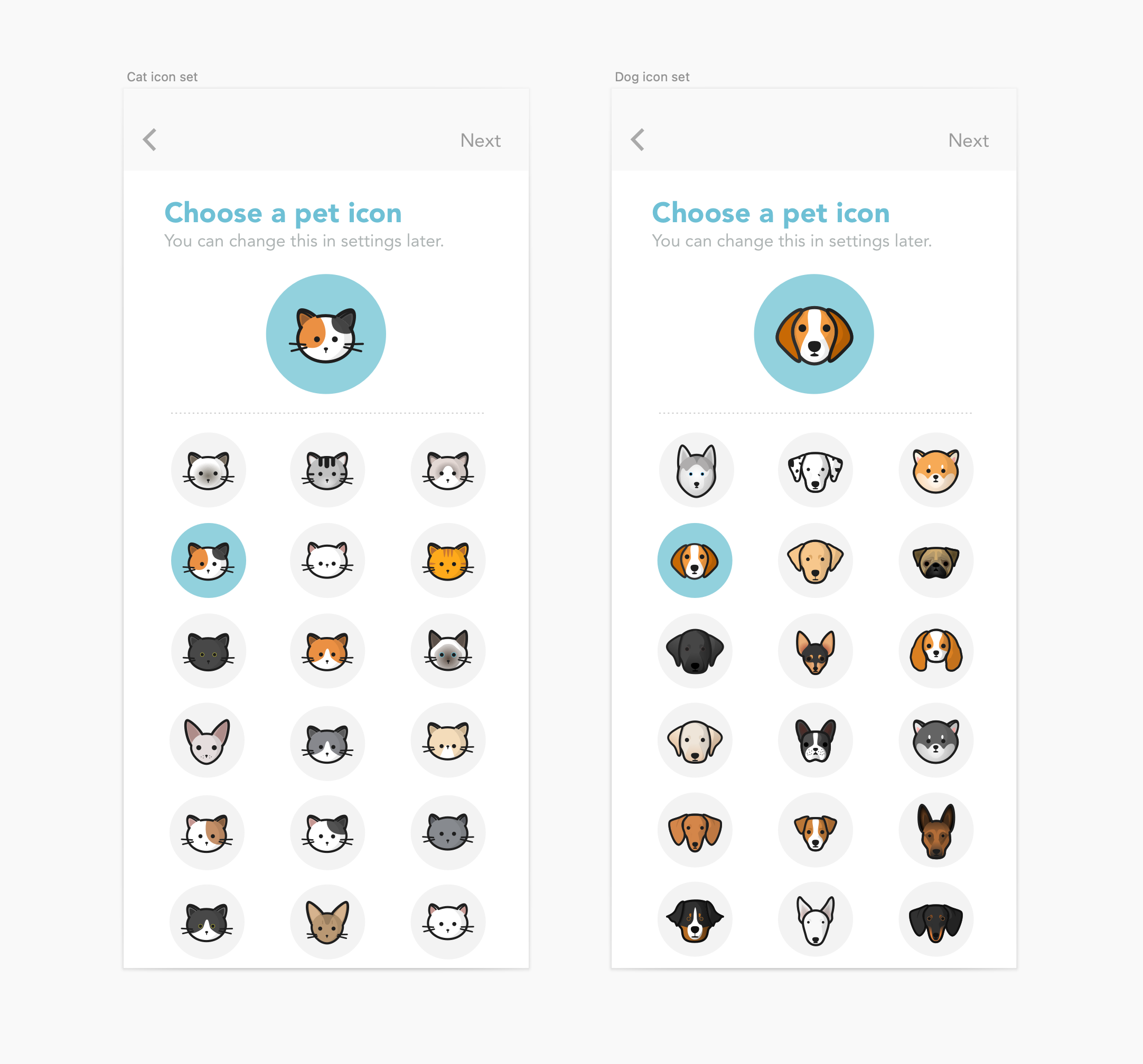 Each icon was carefully designed so users could find one that resembles their own animal. When that moment happens — “this looks like my pet” — something shifts.